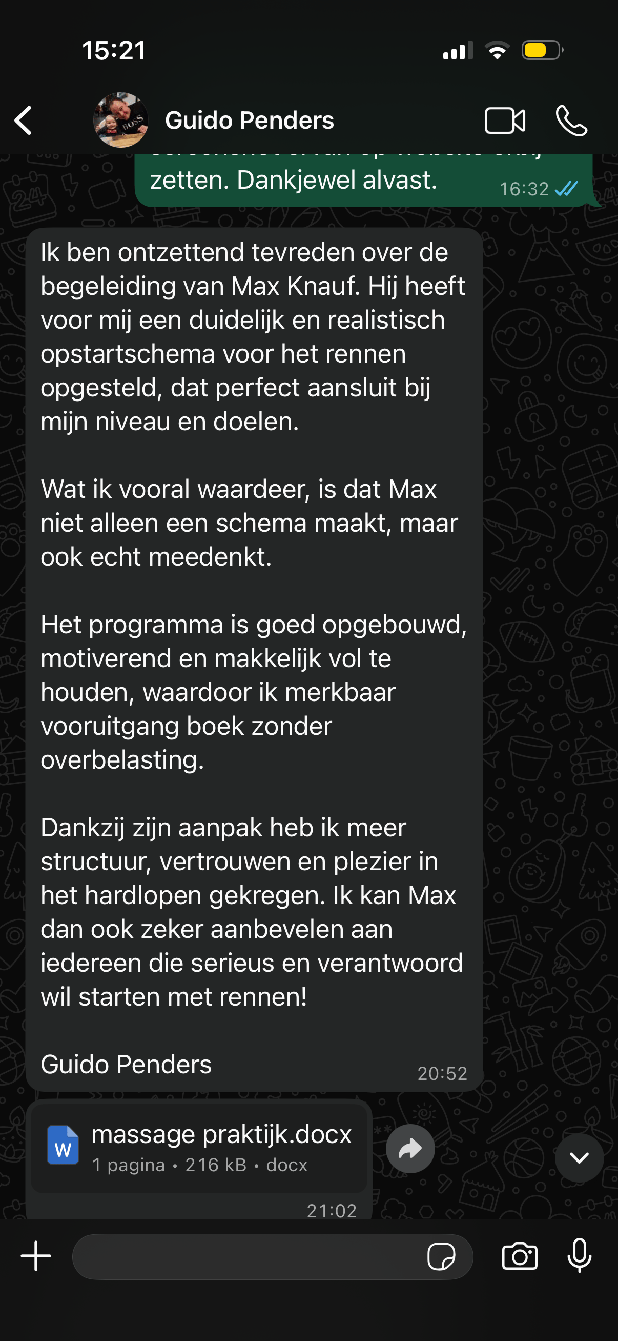 Due to his approach, I gained more structure, more confidence, and more fun while running. That's why I definitely can recommend Max as a coach to anyone who seriously and dedicated want to start with running."